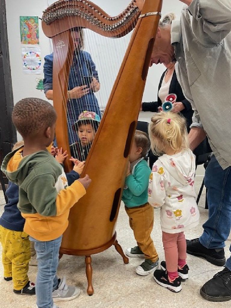 Ces ateliers étaient encadrés par Jean LAMBERT. Grâce à lui, les enfants ont pu jouer de la harpe, du piano et de tous les instruments qu’ils connaissaient déjà comme les maracas, les tambourins, les djembés...