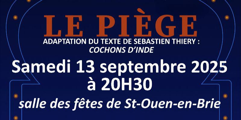 Samedi 13 septembre à 20 h 30, la salle des fêtes de Saint-Ouen-en-Brie accueillera la pièce « Le Piège », adaptation du texte de Sébastien Thiery Cochons d’Inde.